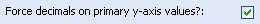 Note: How to set decimal places on primary Y-Axis values Collabion Charts for SharePoint allows the charts to display data with an exact number of decimal places after the whole number. For this, you need to select the Force decimals on primary y-axis values? check box. Click Preview to view the change. For example, 10.831 will appear as 10.8310 if you set this field to 4.