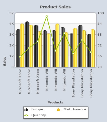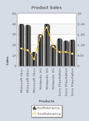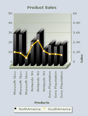 Note: Change the position of the primary Y-Axis By default, the primary Y-Axis appears on the left side of the chart and the secondary Y-Axis appears on the right side. You can interchange the position of the primary and secondary Y-Axes. Note: This feature is applicable to 3D Combination Dual Y-Axis charts only. By default, the Primary axis on left check box is selected.