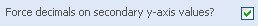 Note: How to set decimal places on secondary Y-Axis values Collabion Charts for SharePoint allows the charts to display data with an exact number of decimal places after the whole number. You need to select the Force decimals on secondary y-axis values? check box and click Preview to view the change. For example, 10.831 will appear as 10.8310 if you set this field to 4.