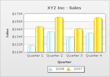 Understanding axis and scale Most of the charts have a vertical and a horizontal axis. An axis is a line beside the chart canvas used as a reference frame for the data values shown in the chart. Generally, the vertical axis (except for bar charts) is named as Y-Axis and the horizontal axis (except for bar charts) is named as the X-Axis. The dataplots are drawn with reference to one or more numeric scales. The Y-Axis (also the X-Axis in scatter and bubble charts) acts as a numeric scale. Each scale has upper and lower limit. The scale is mostly divided into a number of smaller units. These smaller units, with respective values of the scale, help in gauging the value of the dataplots. |