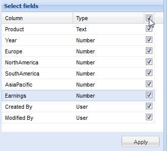 Click Apply to view the chart with all the data fields selected. To select data fields individually, select the check boxes beside the respective fields which you want the chart to fetch data from. Given below is an image displaying how to select individual data fields: