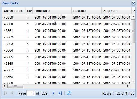It contains 1259 sales records for four years. The dates are recorded in various date columns. We will only consider the OrderDate column for this example and first summarize the data based on years. Following this, we will configure the chart to show monthly sales figures using drill down settings.