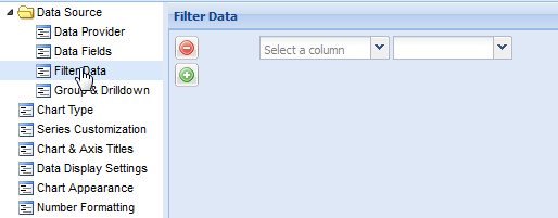 The data source, which you have selected in earlier steps, may contain additional or spare data which you might not wish to show in your chart. You may wish to limit the items that appear on the chart, based on certain criteria. For example, you may wish to show sales data for a particular year from a data source which contains sales data of a decade. Filter Data page allows you to narrow down the selection of data.
