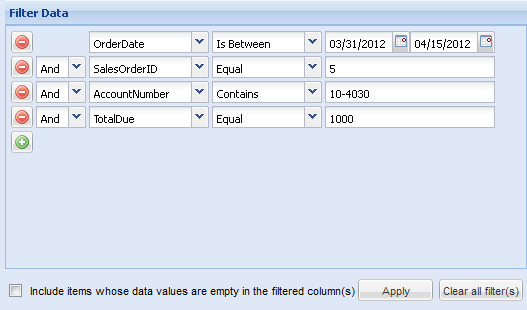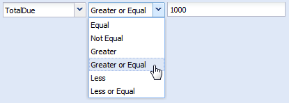 For example, the filter below helps in gathering all data where total due is higher than 1000.