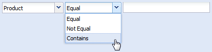 Note: After selecting a column, a drop-down list, containing various filtering conditions, appears beside the column name.