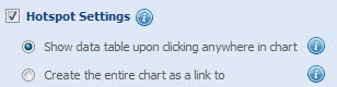 You can configure the entire chart to act as a hot spot. On clicking anywhere on the chart, you can view more information about the chart data, either in a tabular format or in an external file.