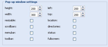 If you have specified the target window as a pop-up window, you can customize the appearance and available features of the pop-up window.