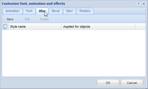 Or  A dialog box appears with the existing blur style under the Style name heading.