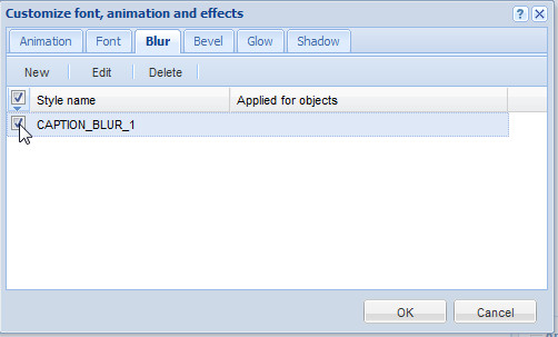 - Make sure that the check box is selected beside the blur style which you want to edit.