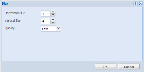 The amount to blur vertically. . Valid values are from 0 to 255. The default value is 4. Values that are a power of 2 (such as 2, 4, 8, 16 and 32) are optimized to render quicker than other values. |