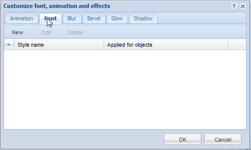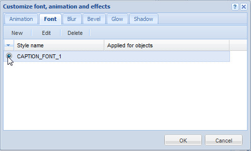 Or  A dialog box appears with the existing font style under the Style name heading.