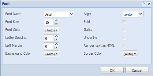 The font dialog box appears with the configurable settings. To know more on the settings click here.