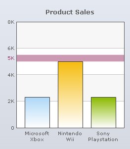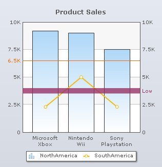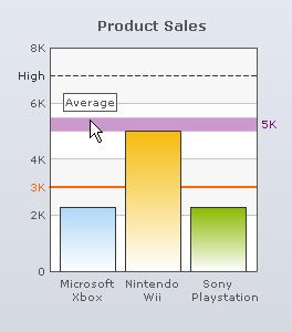 Trend lines are special horizontal lines on the chart canvas that help in highlighting certain values on the chart scale. A trend zone is similar to a trend line in terms of functionality; but it covers a range of values with a lower and an upper limit. Note: Trend lines are not available for Pie, Doughnut, Funnel, Pyramid, Radar charts. A chart showing trend lines and trend zone looks as under: