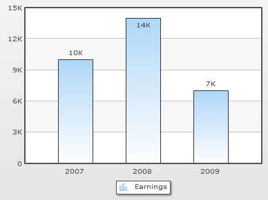A drill-down chart will appear with the breakup of earnings for each year. The sample chart will look as under: