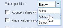 Note: The data labels can be displayed in various display modes. Note: This setting is not available for Bar, Pie and Doughnut and Funnel/Pyramid charts.