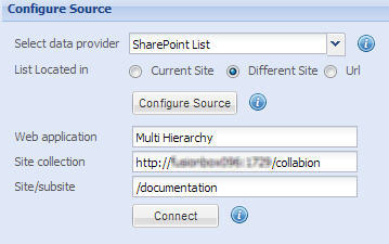 - Click on Configure Source button. Select a site window appears. Select the Web Application. Click Next.