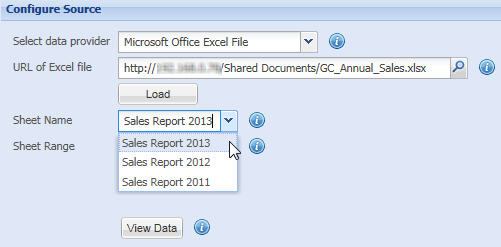 - In the Sheet Name setting, select the sheet of the Excel file that contains the data for the chart.
