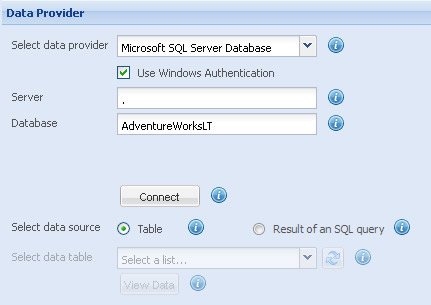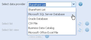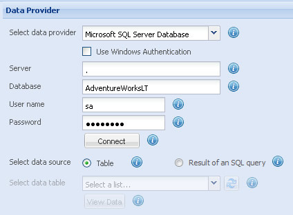 - Select Microsoft SQL Server Database in the Select data provider setting.