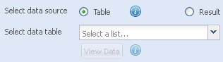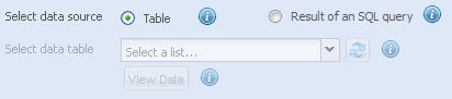When you select the Table option, the Select data table drop-down list appears below the option. It contains the list of available database tables. Choose the required table from the list.