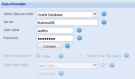 - Select Oracle Database in the Select data provider setting.