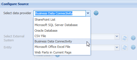 - Select Business Data Connectivity in the Select data provider setting.