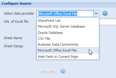 - Select Microsoft Office Excel File in the Select data provider setting.