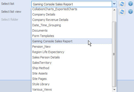 - Choose the SharePoint List containing the data for chart in the Select list setting.