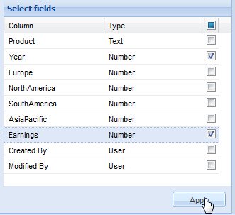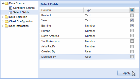 Click Apply to view the chart with selective data fields. |