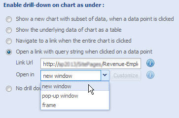 This is a smart drill-down feature that allows you to open a web page and pass certain parameters with the URL when someone clicks on a data point in your chart.