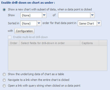 - Click Configuration button to add captions to your drill down chart.