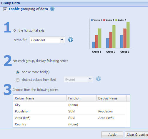 Take a look at Data Selection > Group Data to know about grouping of data in details.