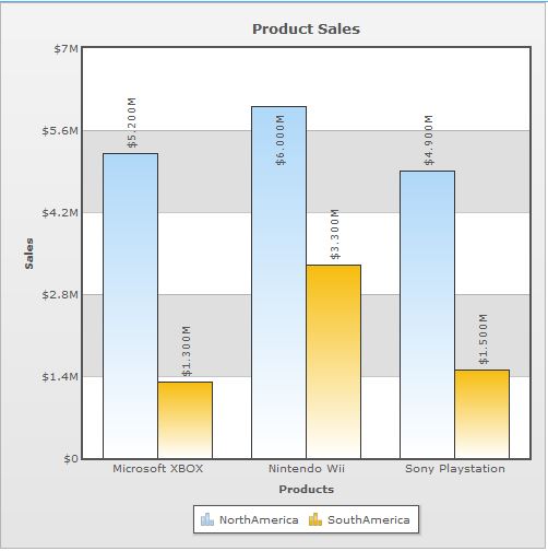 Note: To round off and display the fractional part of a number, make sure that you have selected the Format numbers using thousand and decimal separators (e.g., 100,213.45) check box. The following chart demonstrates the Round numbers to how many decimals and Force exact number of decimals features (here the values have been rounded off to 3 places of decimal) : If you do not wish to display fixed number of decimal places for the data values, clear the Force exact number of decimals checkbox. The chart below demonstrates the disabled Force Y Axis decimal values feature: