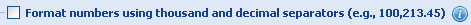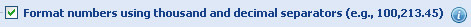 The following chart demonstrates the default setting of Format numbers using thousand and decimal separators feature: