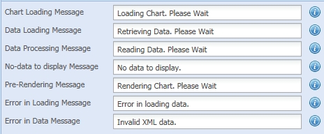 You can modify the various messages that are displayed on the chart, for example: ‘Error in loading data’, ‘Loading chart’, etc.